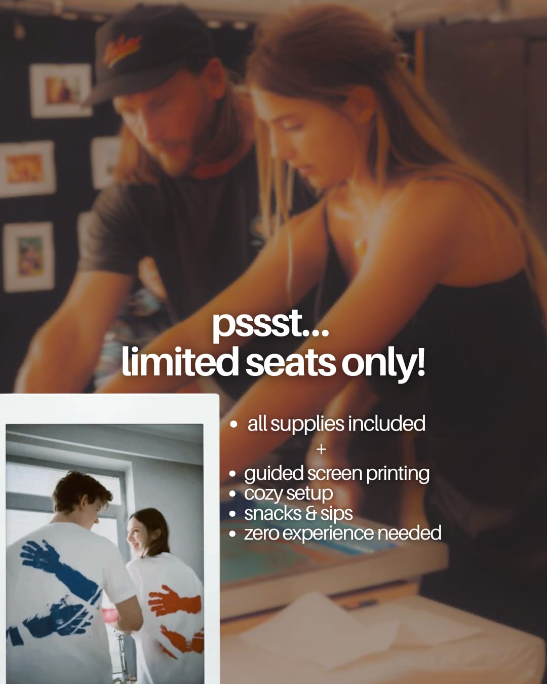 Join us for a fun and creative Valentine’s screen-printing workshop where you and your loved one can design and print your own custom pieces together. Whether you’re coming as a couple or with friends, this experience is all about creating, bonding, and taking home something truly special.